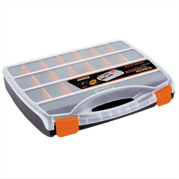 Ταμπακιέρα πλαστική μονή με διάφανο καπάκι και 21 θήκες. Διαθέτει ρυθμιζόμενα χωρίσματα για προσαρμογή του μεγέθους των θέσεων, σύμφωνα με τις ανάγκες αποθήκευσης.
