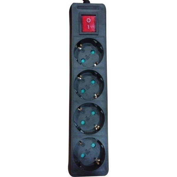 Πολύπριζο Ασφαλείας 4 Θέσεων με Διακόπτη και Καλώδιο 2m σε Μαύρο Χρώμα